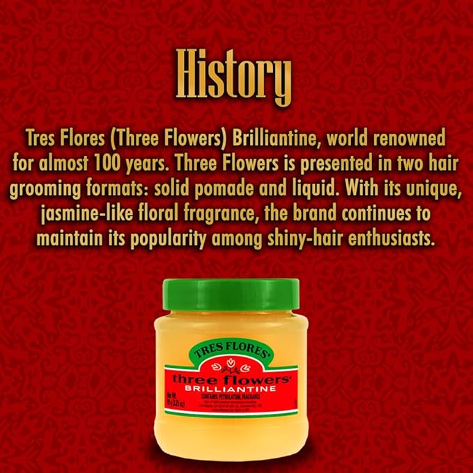 Since 1915 tres flores three flowers initially a por perfume and the tres flores brillantine an essential hair care in mexicans and latin americans three flowers solid brilliantine by tres flores. I've been using this since i was a teen; Three flowers is presented in two hair grooming formats, this is the solid pomade (3.25 oz). Good product for shine and simple hair styles. Three flowers brilliantine 3.25 oz.