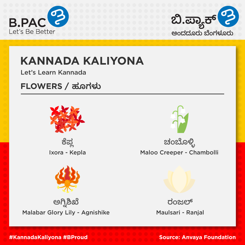 Through this lesson learn flower names in kannada. This book, photo guide to selected medicinal plants of karnataka, is an attempt to make the readers identify the common medicinal plants in karnataka state. English transliteration kannada flower(s) hoovu(galu) ಹೂವು(ಗಳು) arabian jasmine dundu mallige ದುಂಡು ಮಲ್ಲಿಗ You might even have a flower garden. List of fruit names in kannada language.