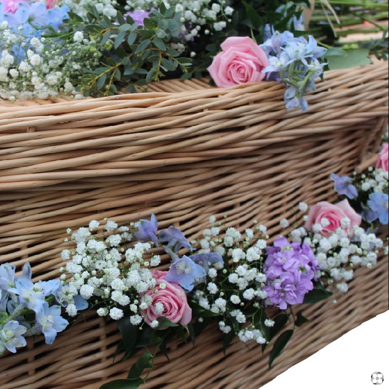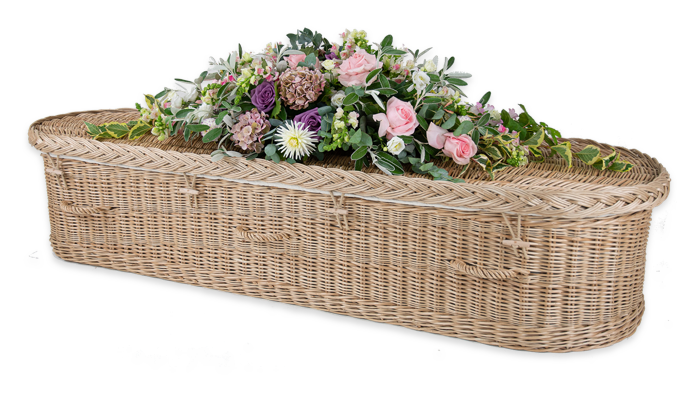 Willow basket coffins can look even lovelier with the addition of flowers.